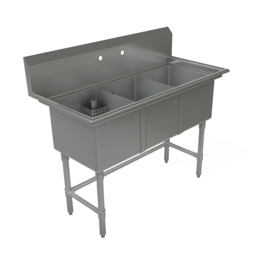 Tarrison | Évier de vidange d’angle à trois compartiments, cuvette de 18 x 15 x 13 po, acier inoxydable