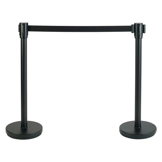 Winco Stanchion Post with Retractable 6.5ft Belt, Black, 34"