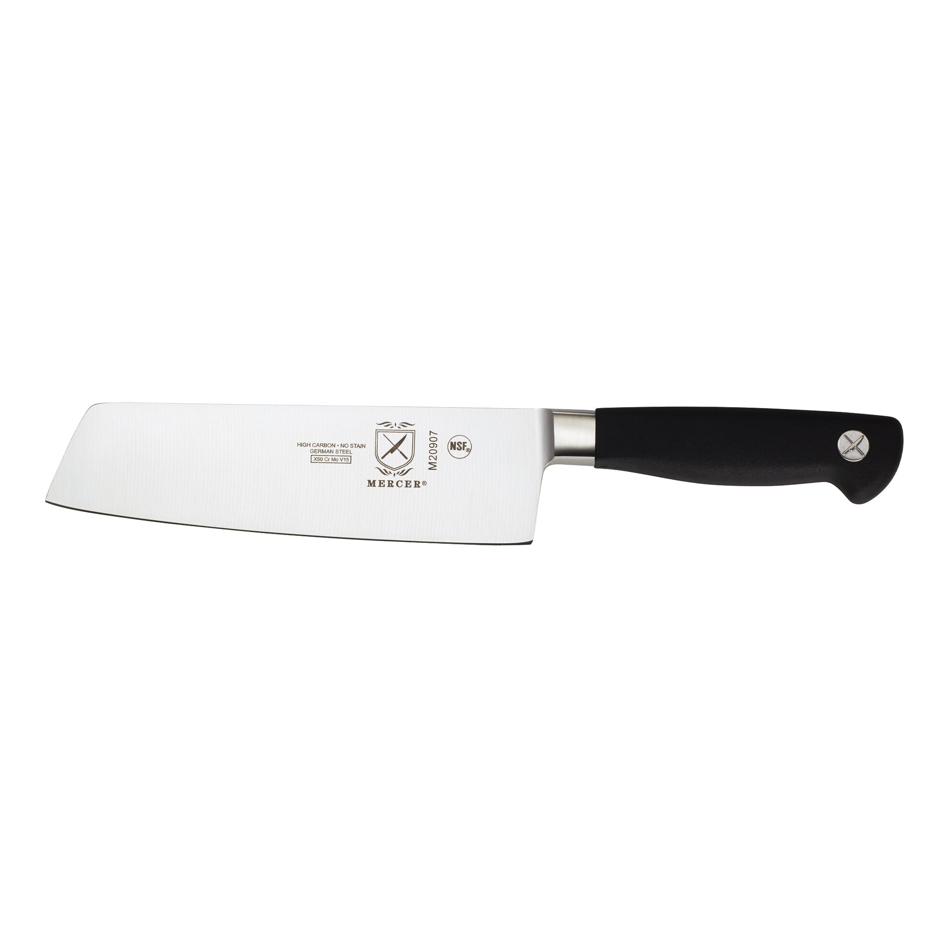 Hachez, coupez et tranchez facilement avec le couteau Mercer Genesis Nakiri de 7 po. Il est doté d'une lame en acier allemand résistante aux taches, à la rouille, à la corrosion et à la décoloration. Il est doté d'un bord effilé qui ajoute de la stabilité, offre un affûtage facile et un tranchant durable.