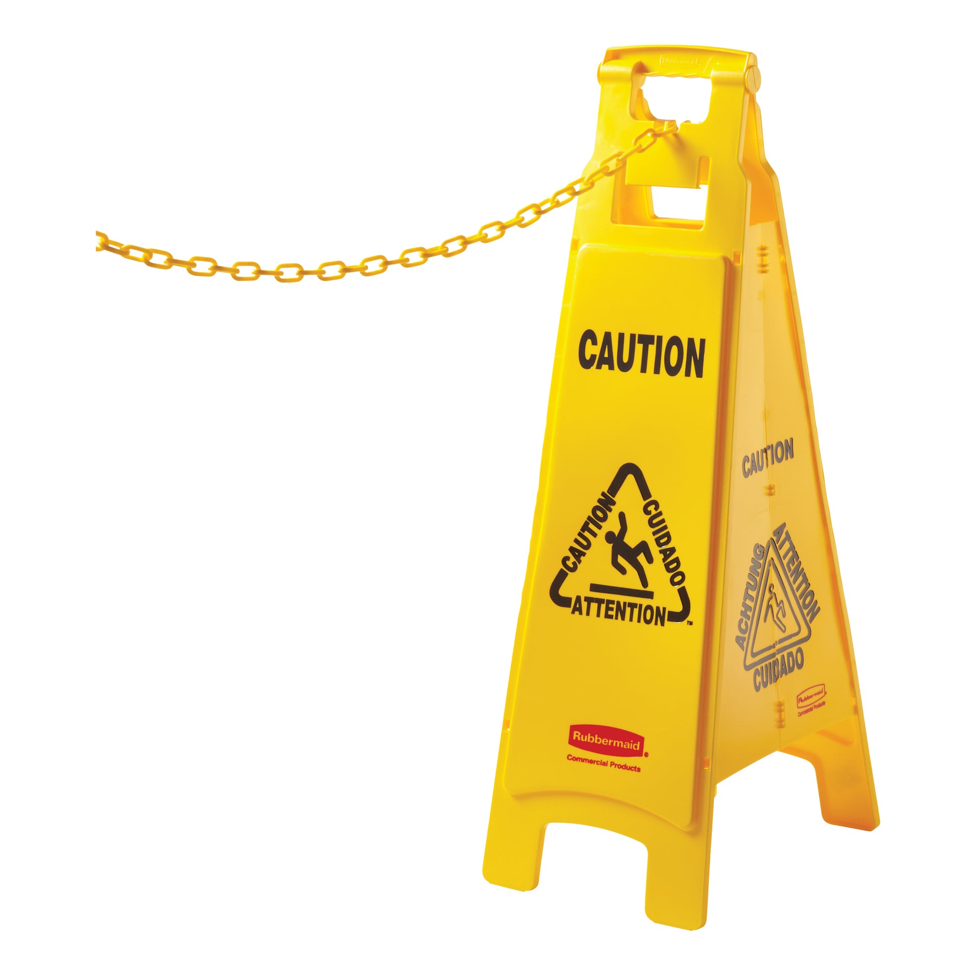 Protégez vos employés et vos clients avec la chaîne de barrière de sol Rubbermaid. Cette chaîne jaune vif offre une visibilité claire et peut se fixer aux cônes de sol mouillés pour restreindre l'accès aux zones dangereuses.