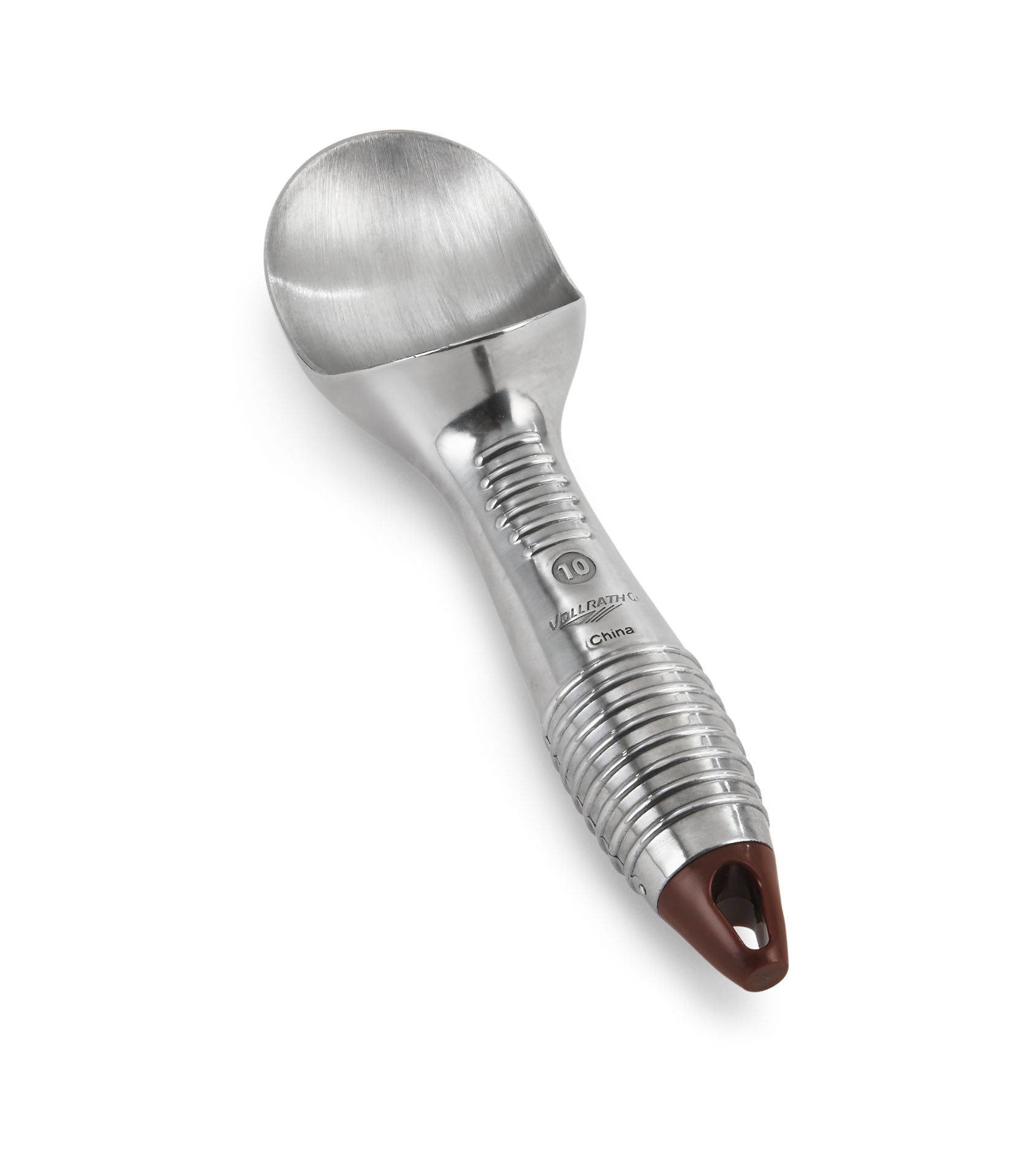 La cuillère à glace à code couleur Vollrath est dotée d'une poignée antigel pour faciliter le démoulage du produit. Sa poignée ergonomique brevetée est conçue pour une prise en main sûre. La cuillère à glace est dotée d'un trou de suspension pour un rangement pratique et peu encombrant.
