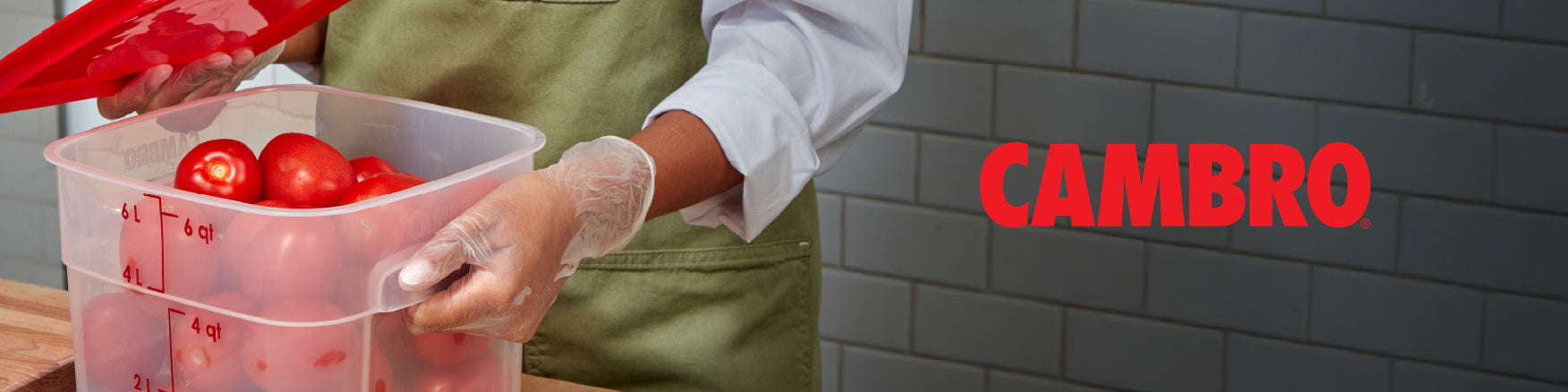 Cambro helps commercial kitchens store, hold, and move food with system-fit pans and lids, colour-coded ingredient containers, insulated carriers, and polymer shelving. Choose Camwear polycarbonate or High Heat H-Pan for the right temperature range, pair with CamSquares FreshPro for organized storage, and use GoBox and Camtainers to keep food and beverages at serving temperature during transport.