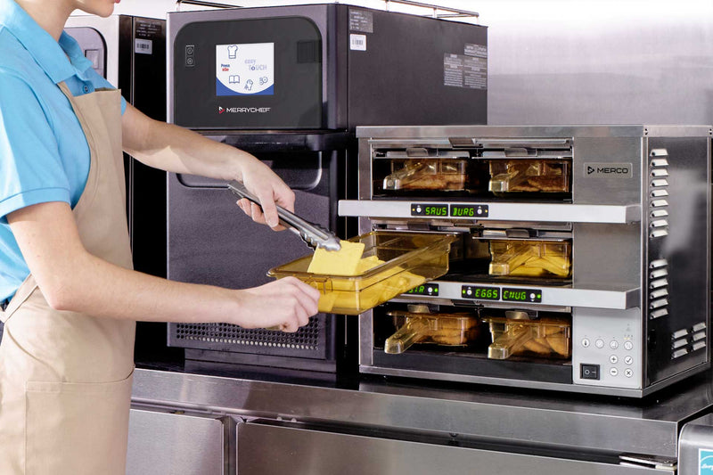 Merco designs hot holding equipment that keeps cooked food at serving quality for faster assembly and less waste. The lineup includes visual holding cabinets with touchscreen controls, modular holding bins, and CrispyMax fry holding stations that use controlled airflow to maintain temperature and texture.