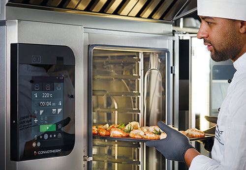 ConvoClean provides fully automatic cleaning with selectable modes, and the disappearing door increases aisle space and reduces burn risk.