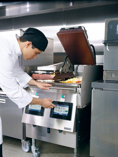Merrychef designs high-speed ovens that combine convection, tuned impingement, and microwave to deliver fast, consistent results in compact footprints. The conneX and eikon lines add touch controls, ventless catalytic filtration on select models, and standard Wi-Fi/Ethernet connectivity for remote menu updates through KitchenConnect.
