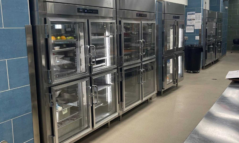 Front-breathing prep stations save space against walls, and reach-ins offer touches like auto-closing or stay-open door hinges and tool-less, snap-in gaskets for easier cleaning and loading.