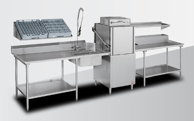 Custom Quest dish tables integrate with warewashers and sinks to create efficient soiled and clean dish landing zones.