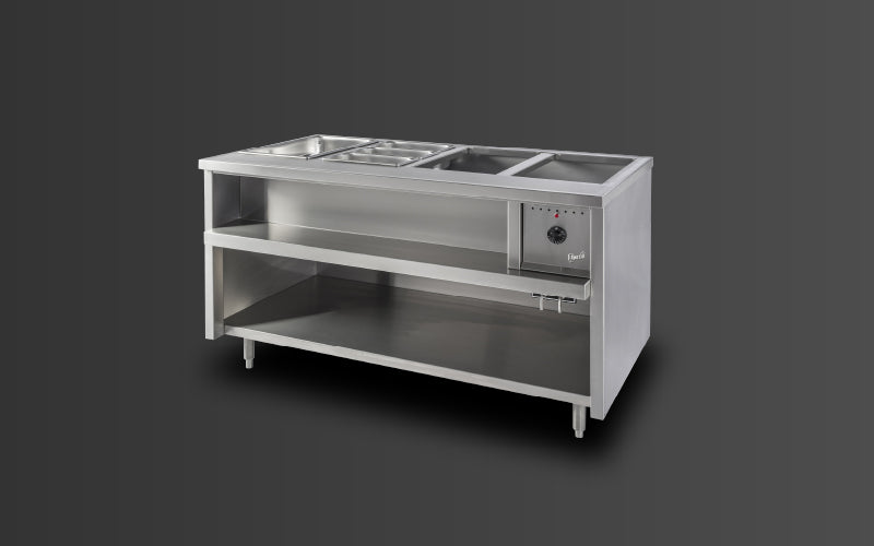 Bain Marie units and electric hot food tables keep soups, sauces, sides and entrées at serving temperature, whether you’re running a buffet, cafeteria line or hot pass.