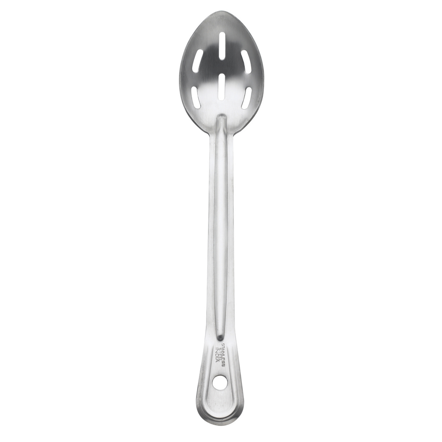 The Browne Stainless Steel Renaissance Slotted Serving Spoon is resilient and will not bend or break under normal use. It has a strong stainless steel structure and a grooved handle for increased durability. The slotted design allows the operator to both drain and serve all with one tool.