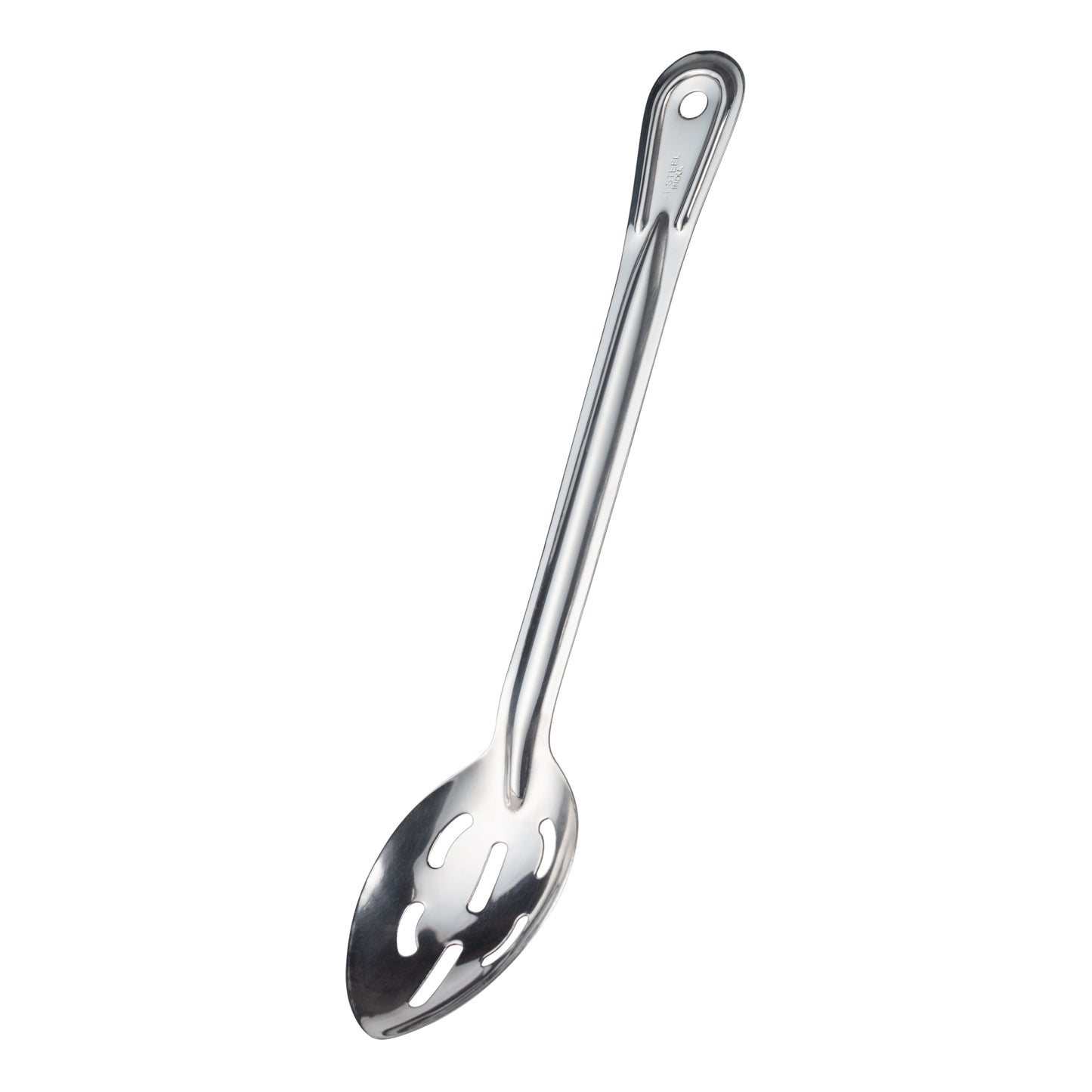 Serve vegetables, drain liquids and more all with one tool. The Browne 13" Stainless Steel Serving Spoon has a mirror finish for an eye-catching design while the grooved handle adds durability. Plus, it has a full-length reinforced rib.
