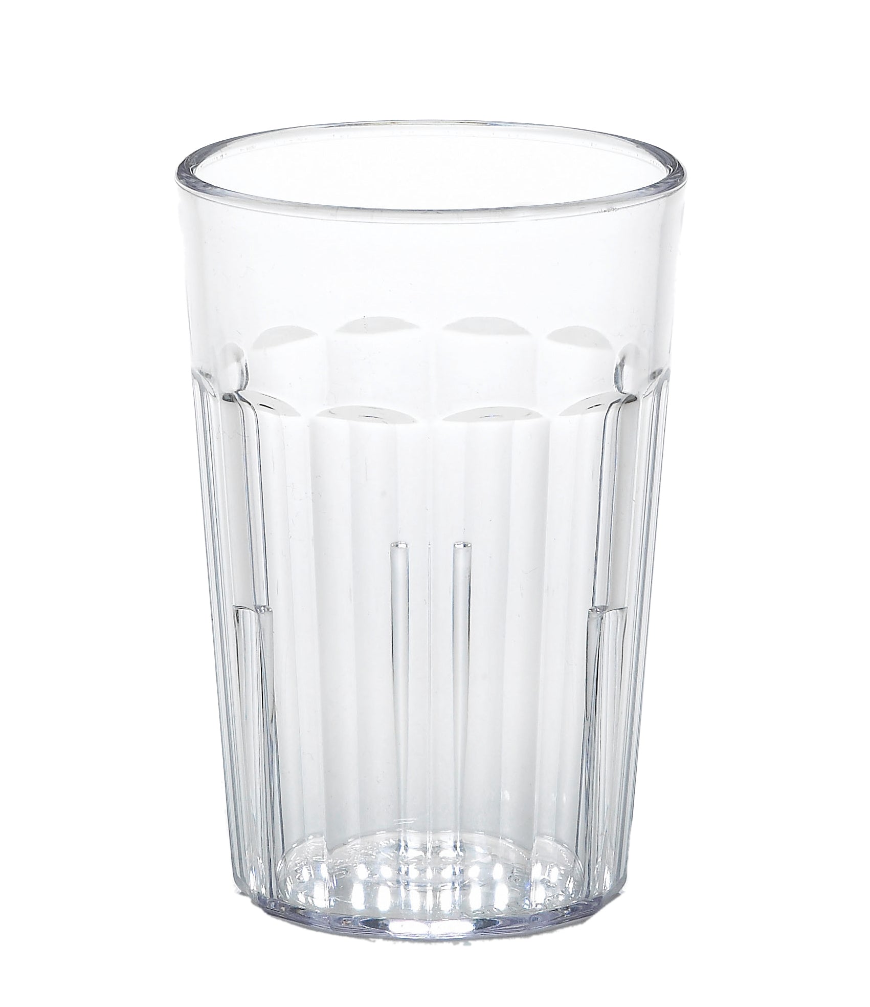 Reduce the replacement cost from unnecessary glass breakage with the Cambro Clear 6.4 oz Camwear Newport Tumblers. These cups are break-resistant and have an attractive fluted design.