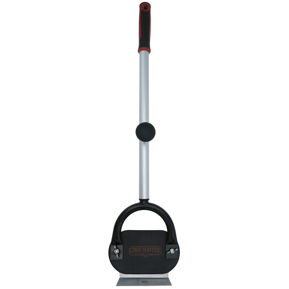 Clean your grill efficiently with the Chef Master 27" Horseshoe Charbroiler Brush. It has a long 27" aluminum handle that's comfortable to hold while the knob on the handle improves control.