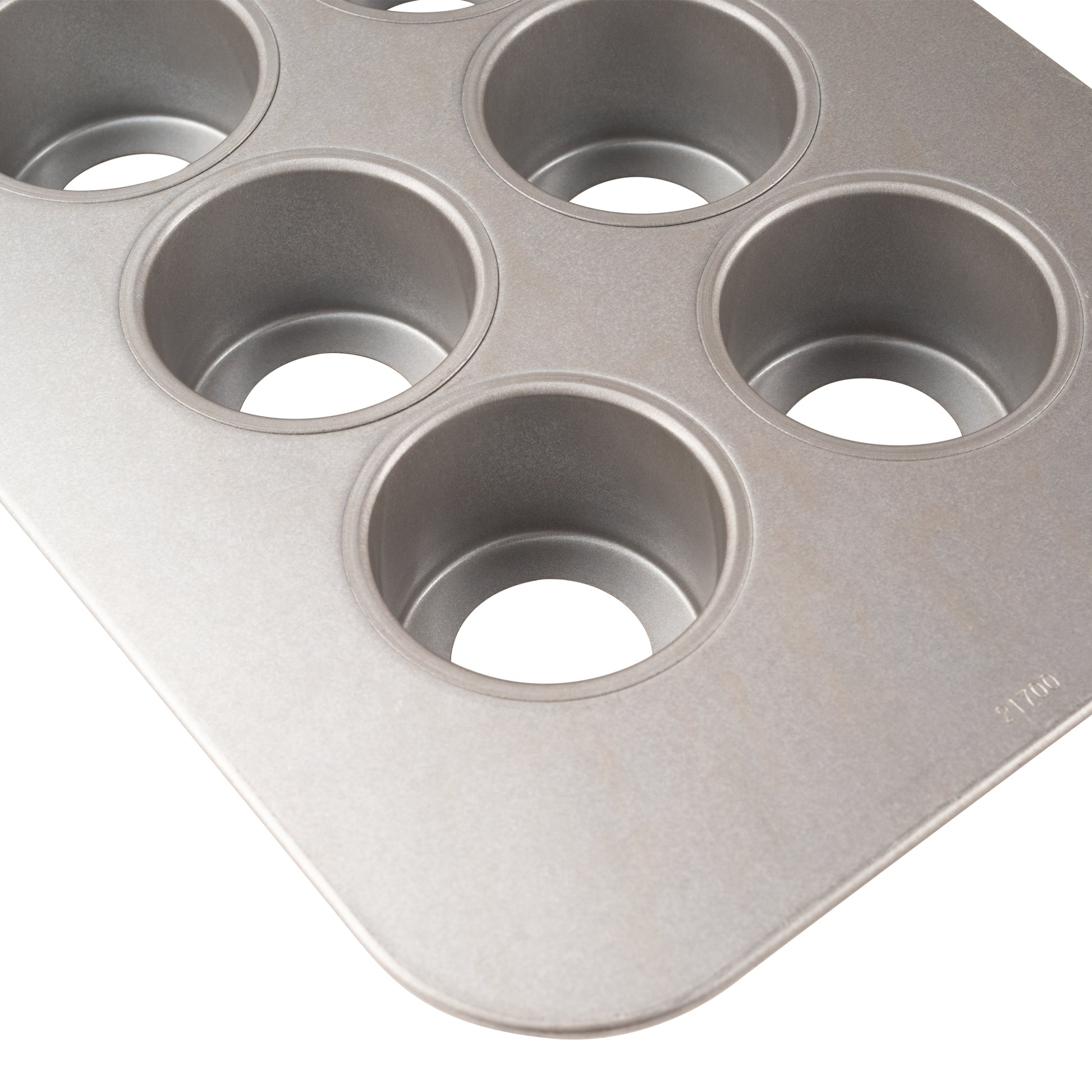 Made with professional quality, the Chicago Metallic 6 Cup Mini Cheesecake Pan is constructed of aluminized steel. The aluminized steel provides excellent heat transfer and is designed to be used day after day. It features a glazed coating which offers an easier release without the use of oil, grease spray, parchment or liners.