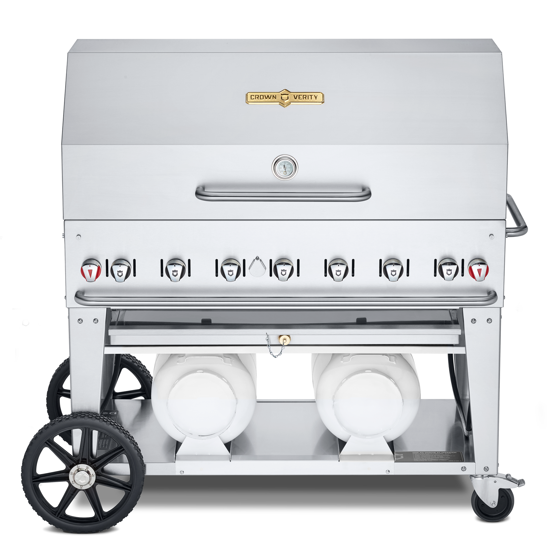 Crown Verity Club Series 48" Grill, Horizontal Tanks, Roll Dome & Bun Rack, Propane - CV-CCB-48RDP