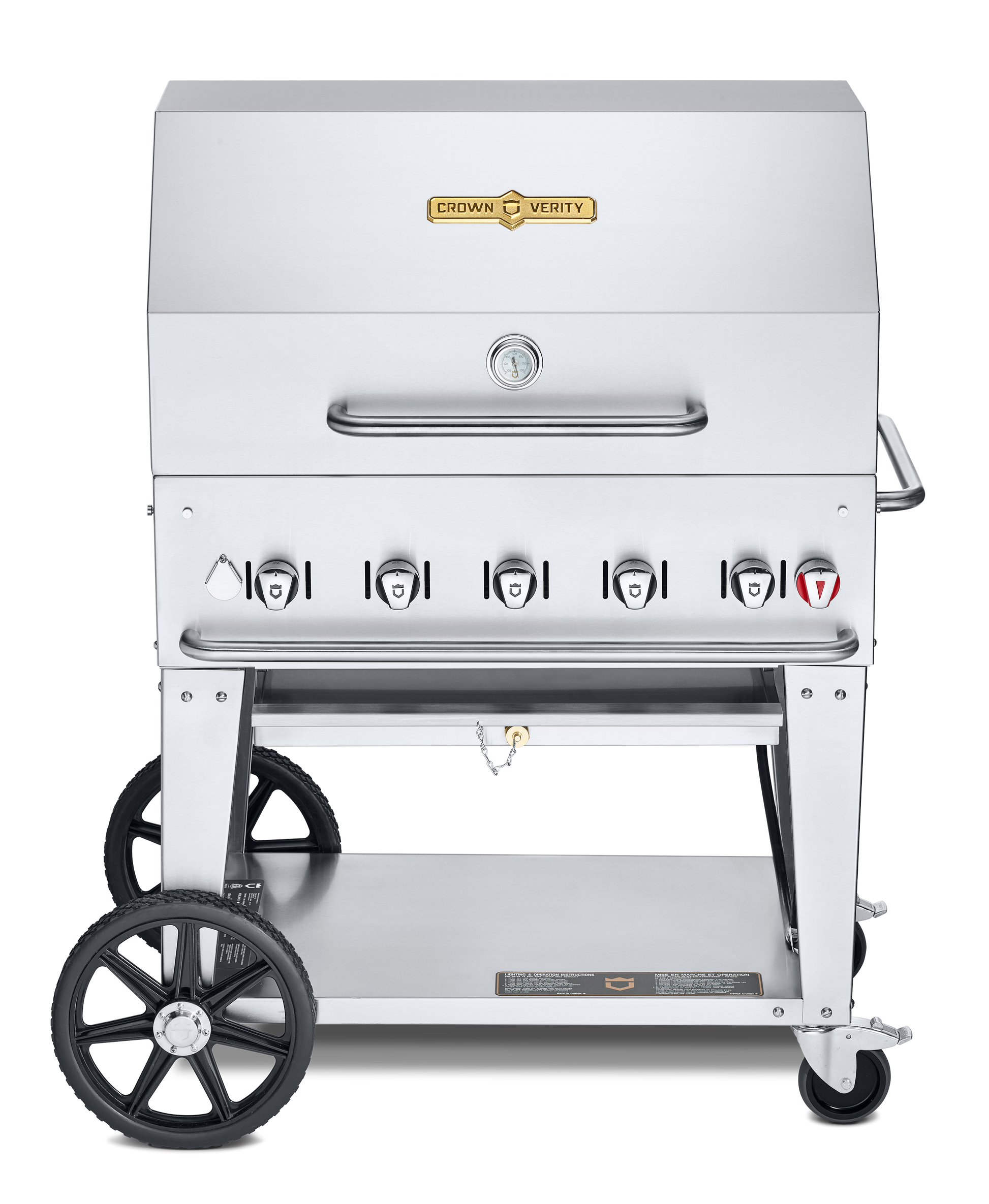Crown Verity Mobile 36" Gas Grill with Roll Dome & Bun Rack, Propane - CV-MCB-36RDP