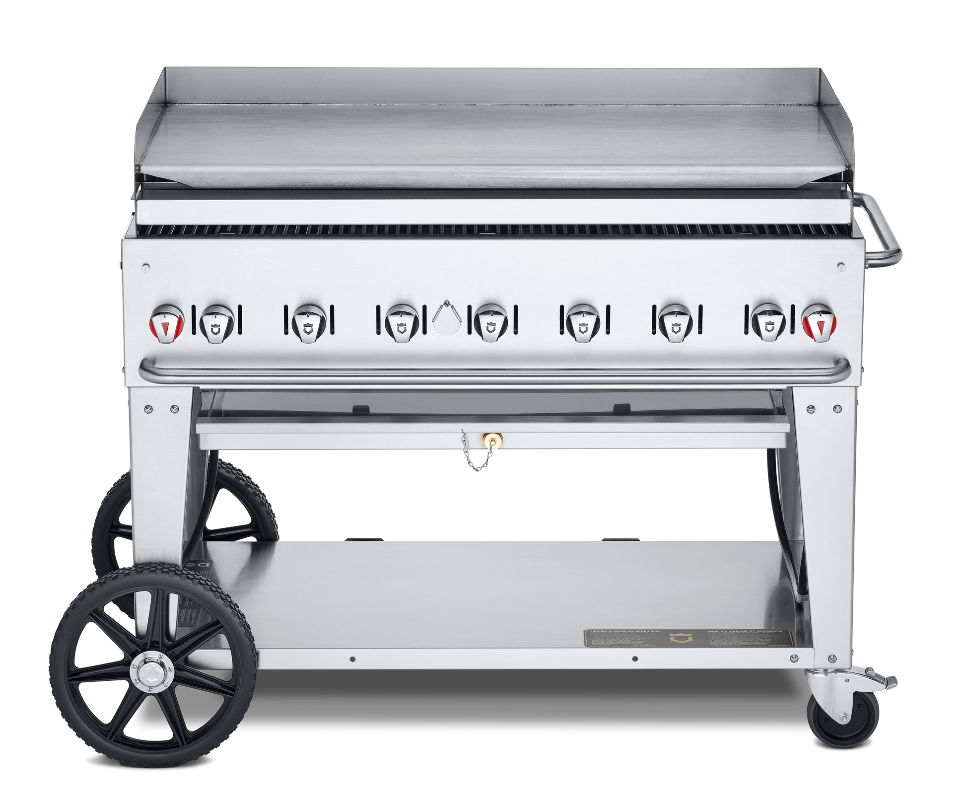 Crown Verity Mobile 48" Gas Griddle with Grease Tray and Backsplash, Stainless Steel, Natural Gas - CV-MG-48NG