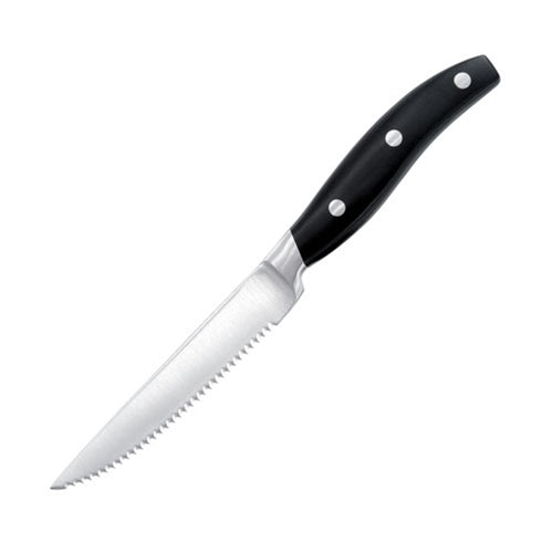 Pairing durability with an attractive design, the Dudson Elegante Steak Knife is a tabletop must-have. It has a riveted handle that is built to last and is comfortable to hold. The blade is made of strong 18/10 stainless steel and has a serrated edge to cut into steak with ease.
