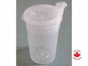 The convalescent cup has a lid with a mouth piece, which has a hole large enough to accommodate a straw. Opposite the mouth piece there is a small air inlet hole in the lid. By putting a finger over the air hole you can regulate the flow of the liquid. 8 oz. (237ml) capacity. Ideal for drinking while lying in bed.