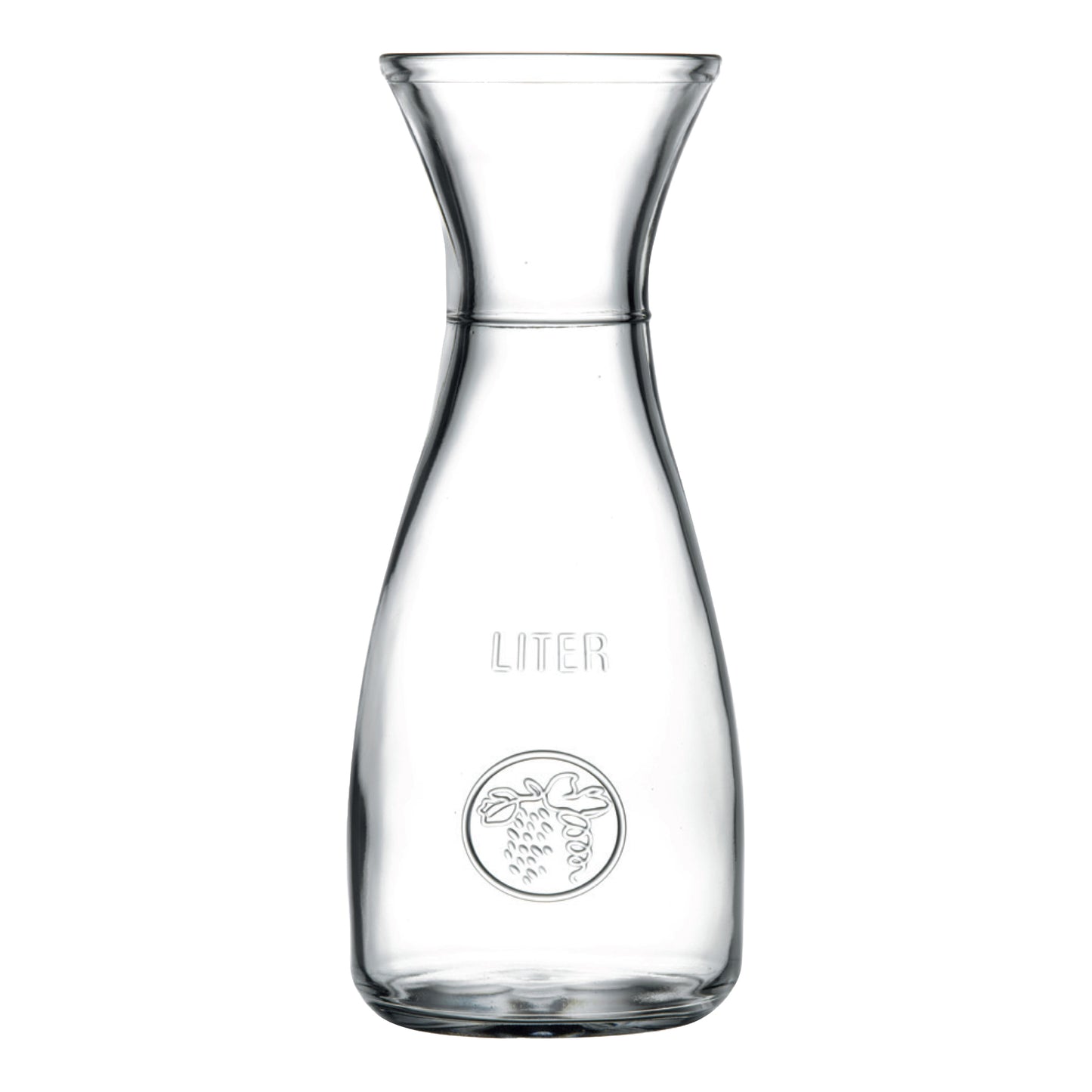 Serve wine, juice, pop and water in the 33.25 oz Pasabahce Bacchus Glass Carafe. It has an attractive hourglass shape for a comfortable grip. The flared-out top makes pouring easier while the line at the top indicates the max capacity. This glassware is perfect for restaurants, cafes, bars and more.