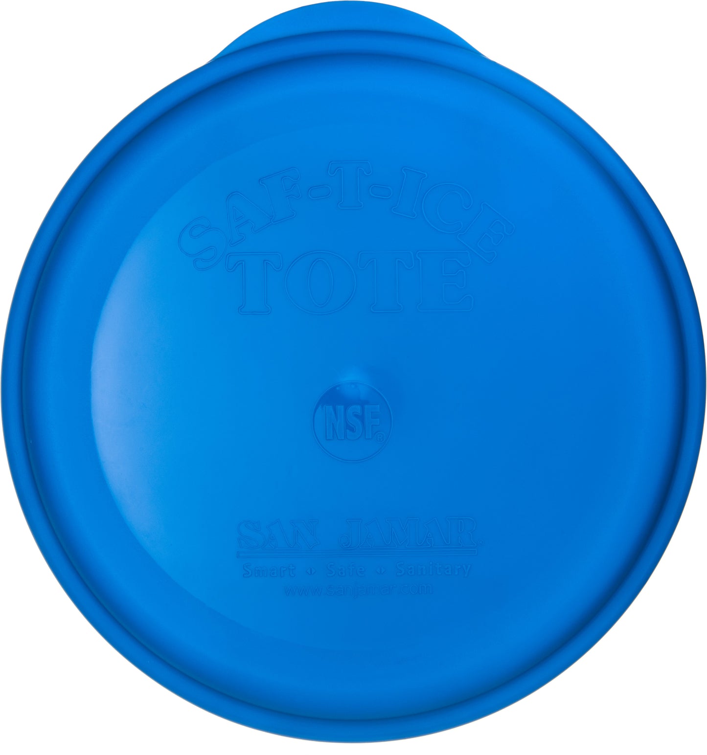 The San Jamar Saf-T-Ice Tote Lid helps protect ice from contamination and secures ice during transport. The snap-tight lid is made of durable polypropylene for a long-lasting structure. It has a built-in thumb tab to effortlessly lift the lid off.