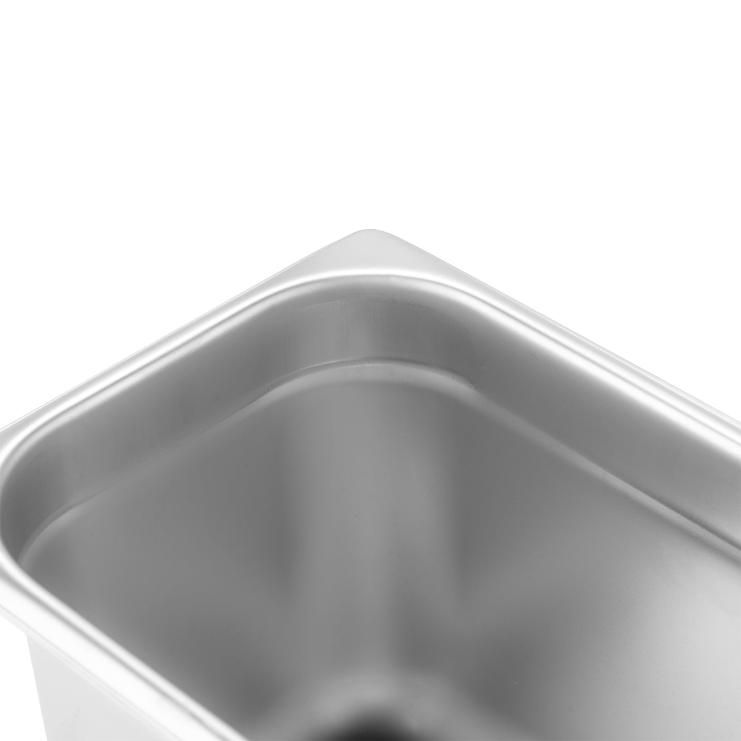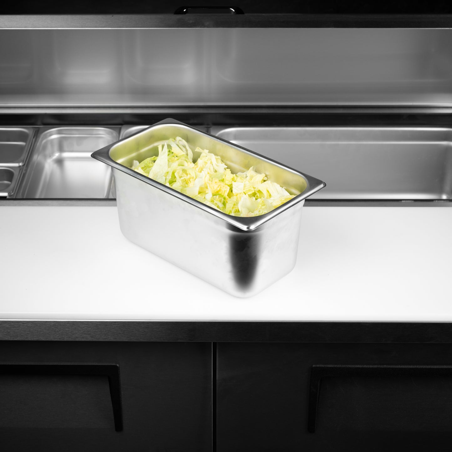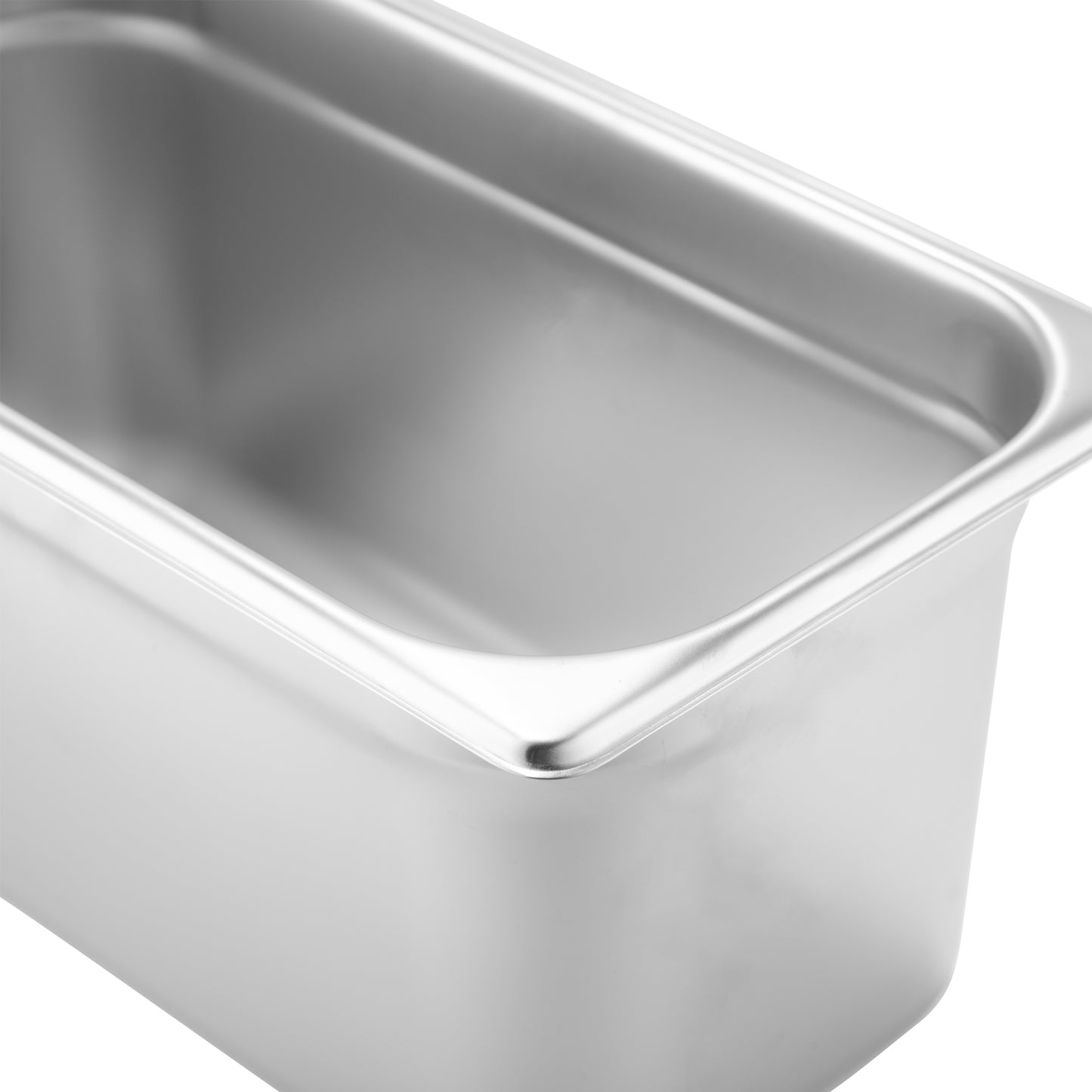 The pan is made with double reinforced corners to increase strength and maintain its shape. It has rounded bottom corners to reduce food waste and allow spoons, spoodles and scoops to easily get the food nested in the corner. It has a stackable design that offers compact storage while the anti-jamming design allows air between the stacked pans for quicker drying and better ventilation.