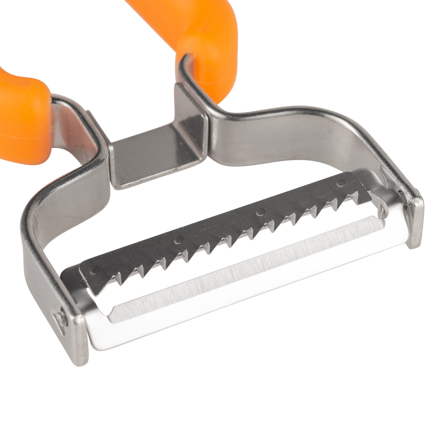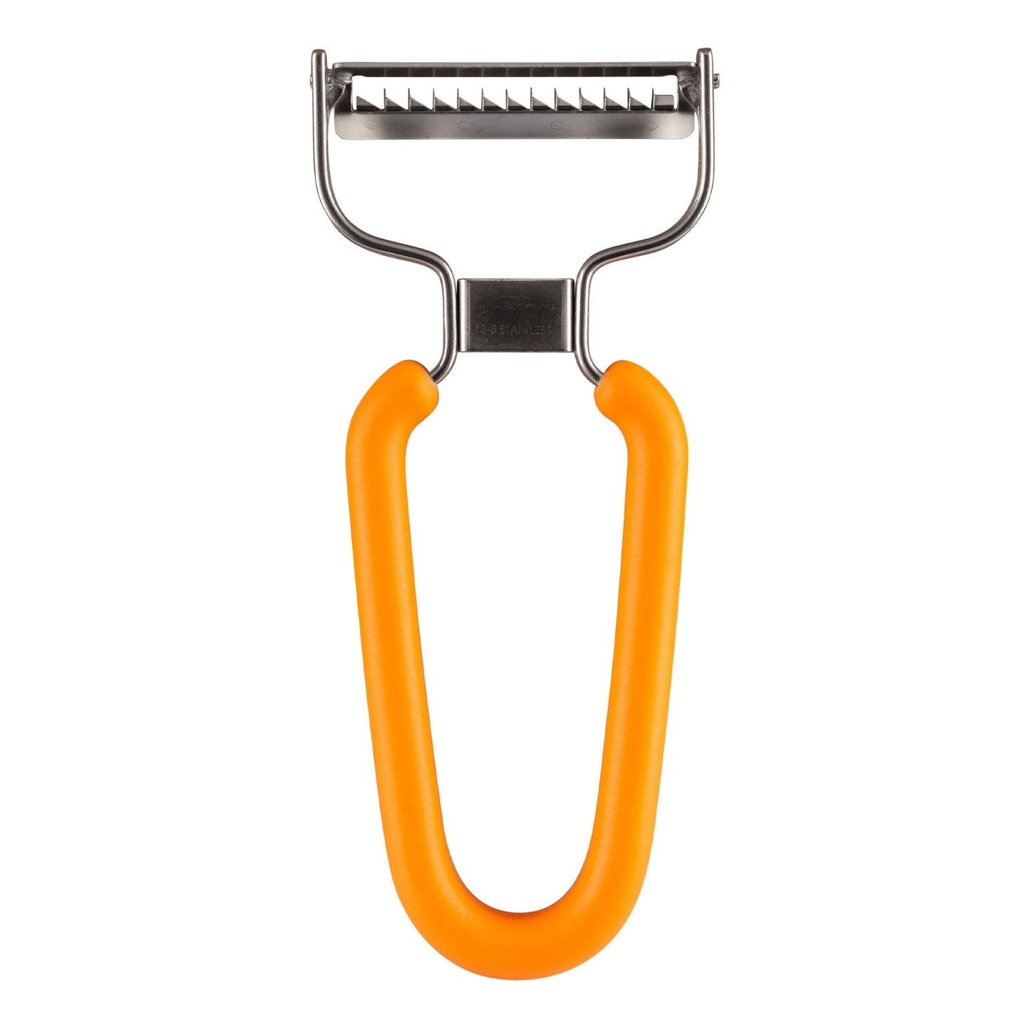 Peel your fruits and vegetables with ease using the SignatureWares Julienne Blade Y Peeler. It has a stainless steel julienne blade that is extra sharp with serrated spikes and has a long-lasting construction. The blade creates long strips effortlessly and is extremely versatile.