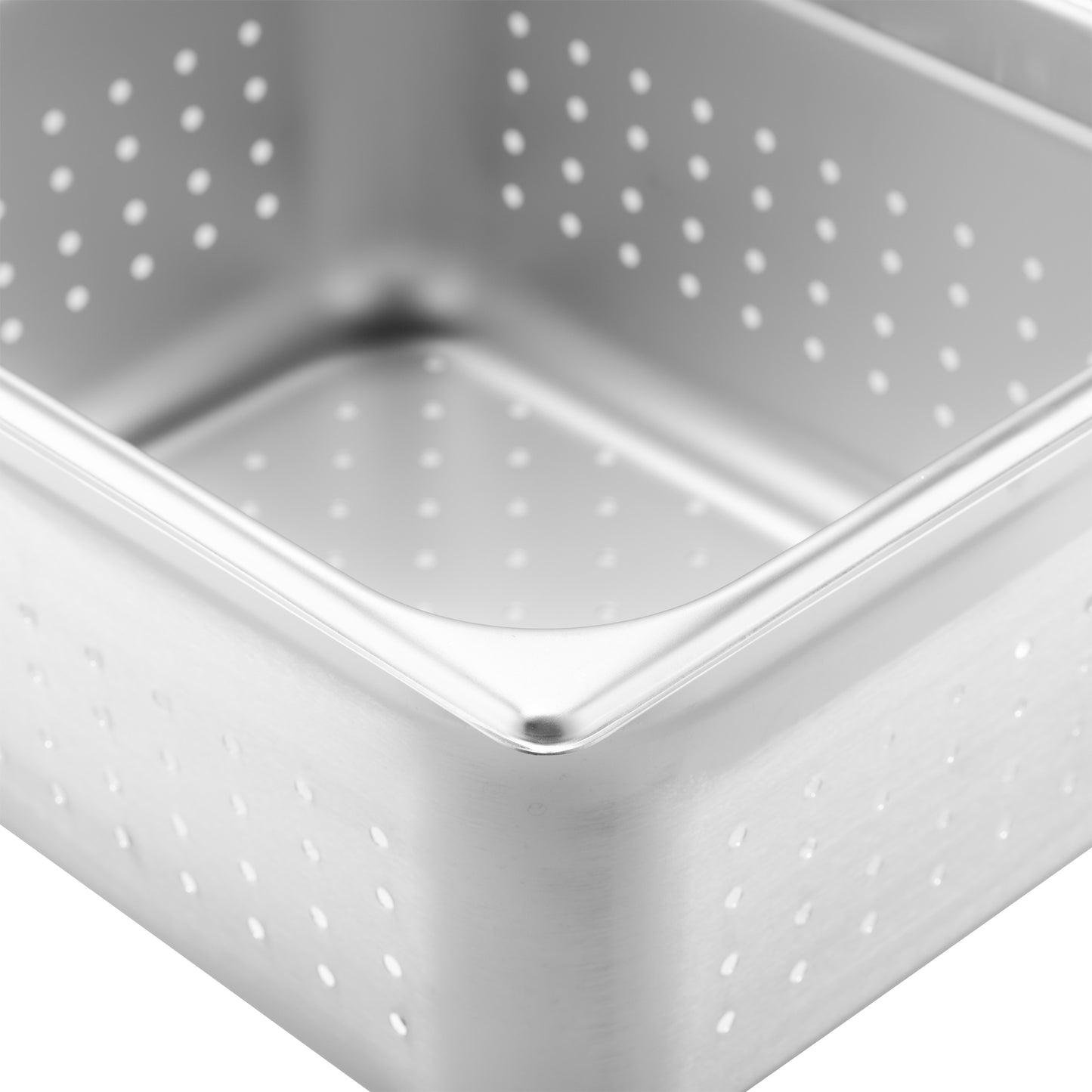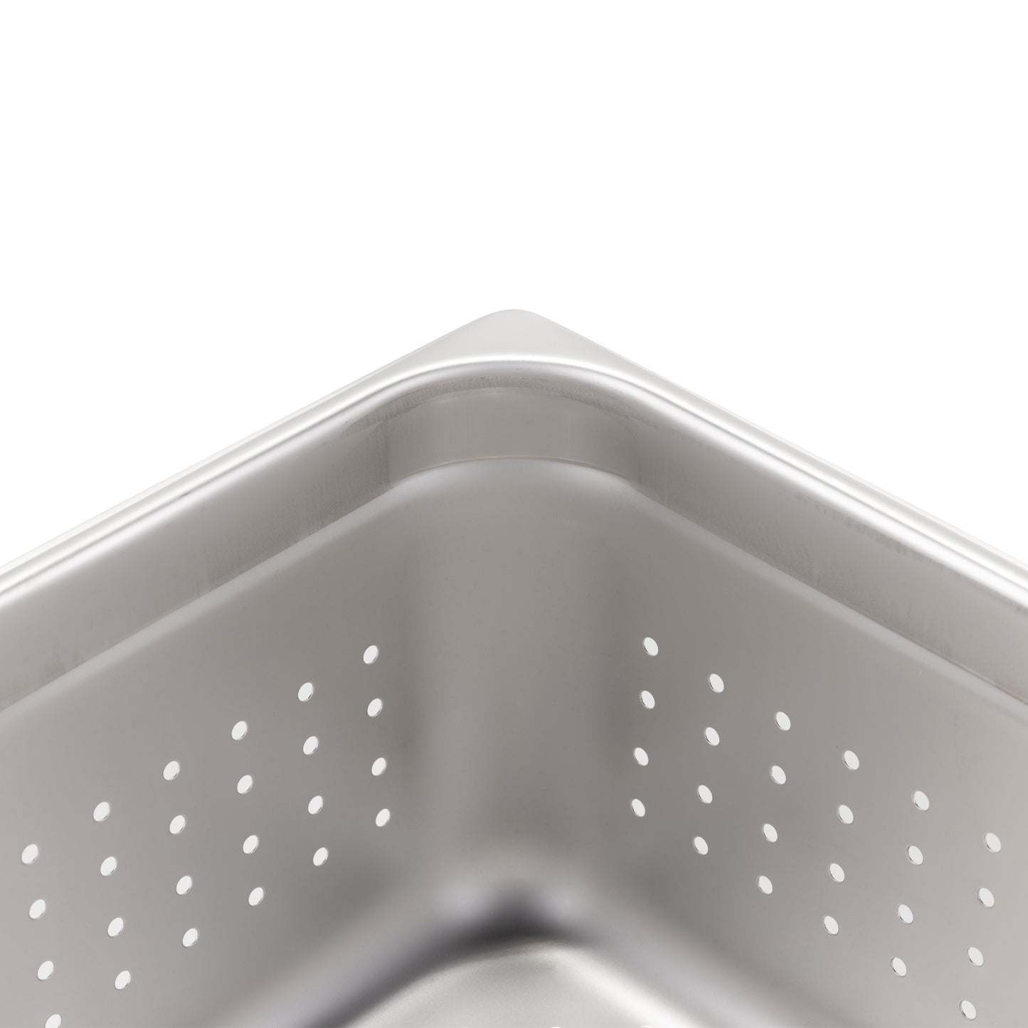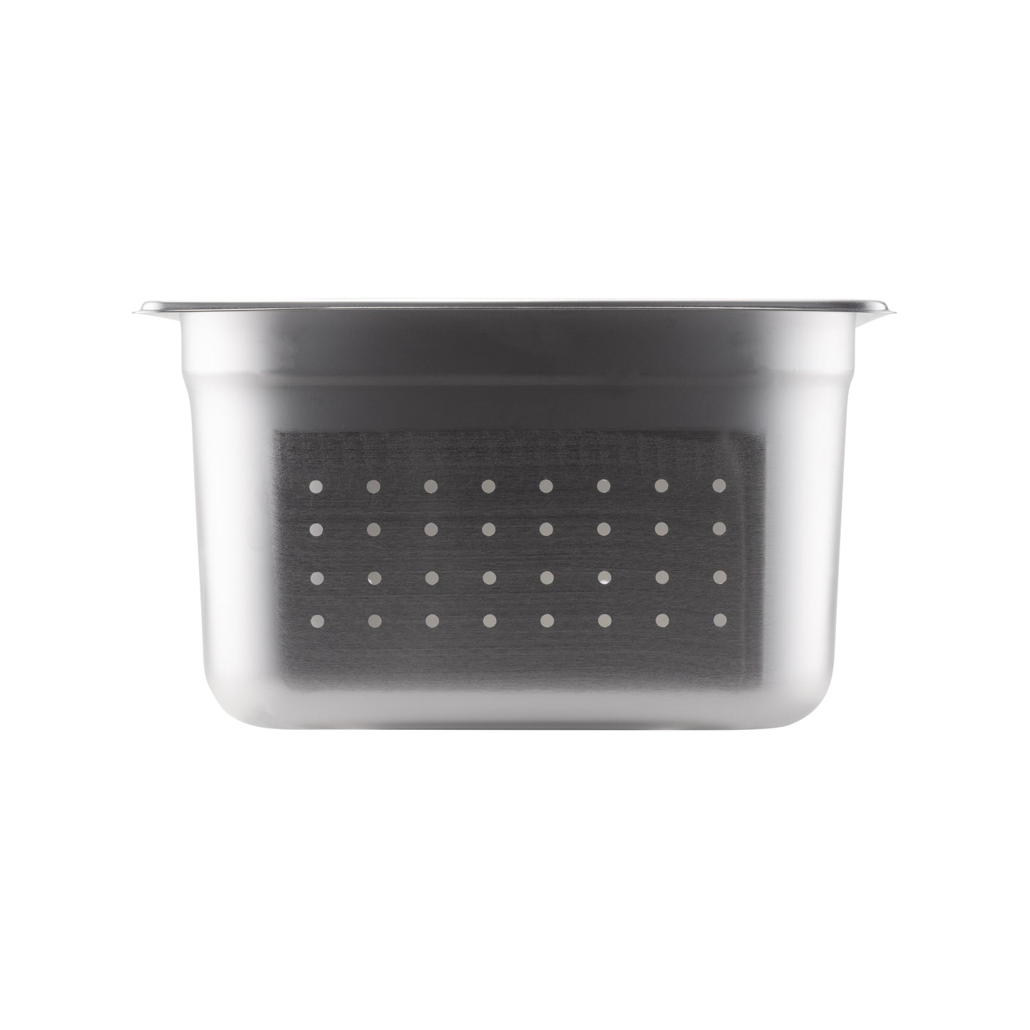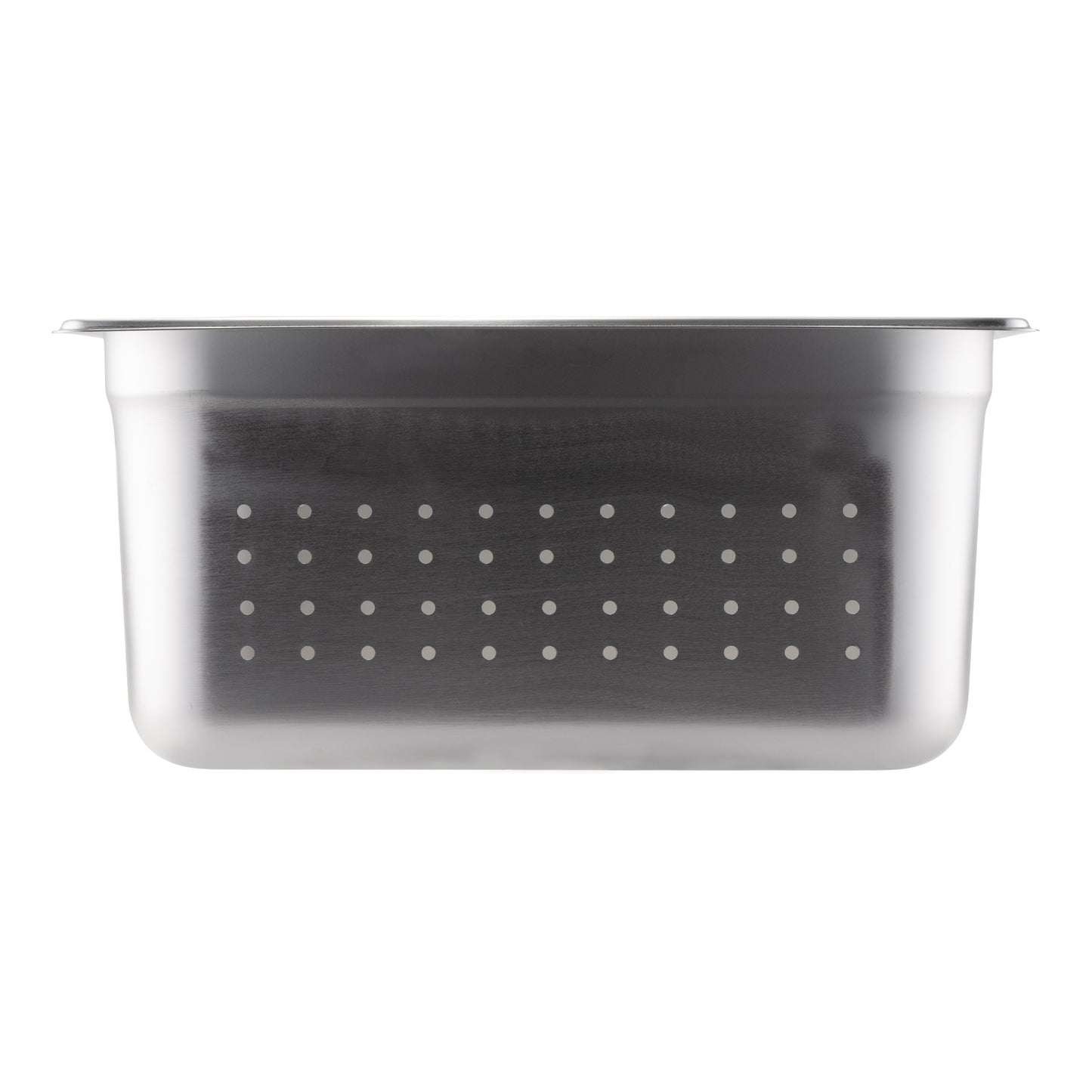 Known for many names (inserts, hotel pans, steam table pans and service pans to name a few), this commercial perforated food pan is made of anti-corrosive stainless steel that will not absorb odours, resists stains and is dishwasher safe for convenient cleaning. The reinforced corners help maintain the steam pan's shape and increase strength.