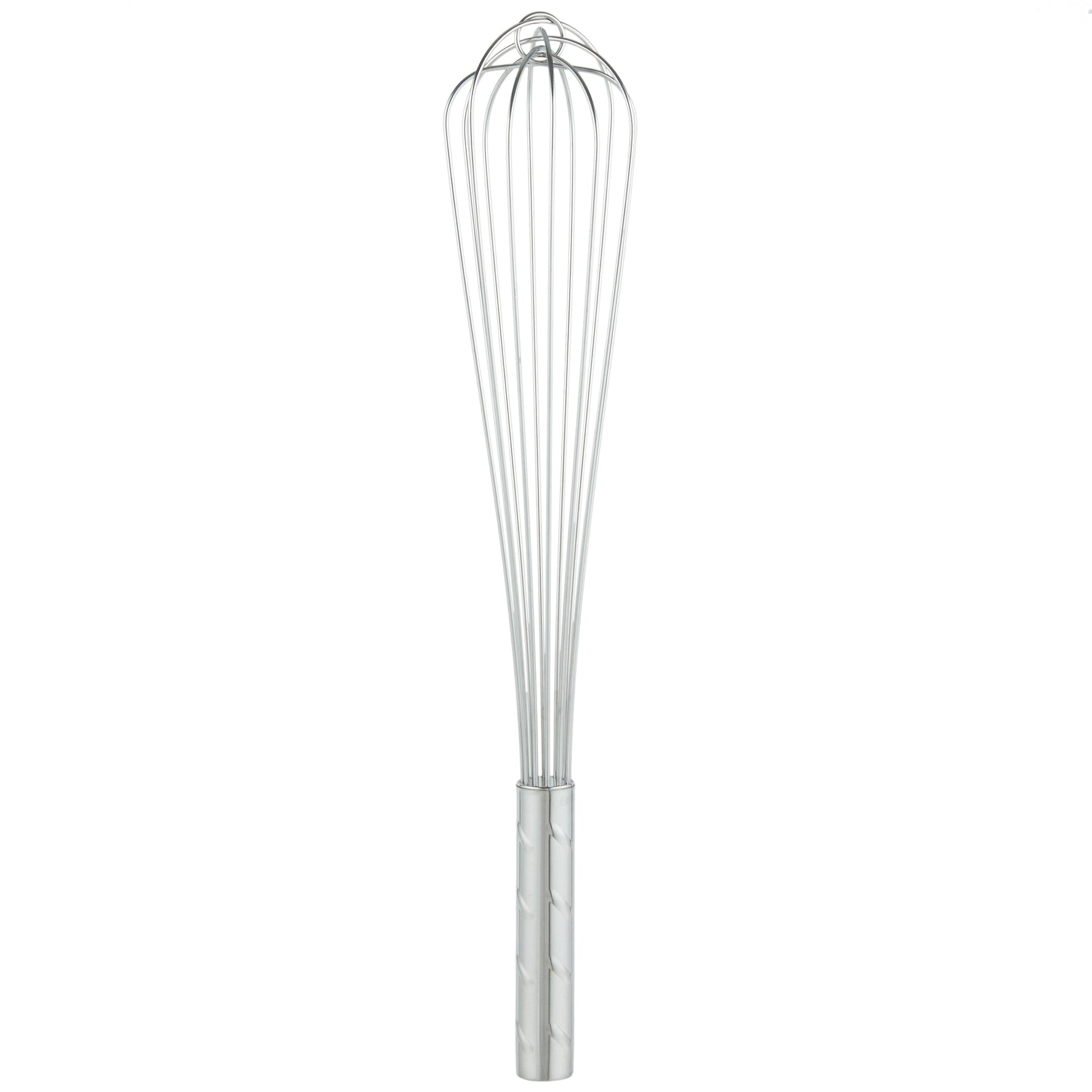 Whip up eggs, batters and blend signature sauces with the Vollrath 18" Stainless Steel French Whip. It has a reinforced center wire that prevents bending, twisting and deforming. Plus, the wire construction resists corrosion and rusting.