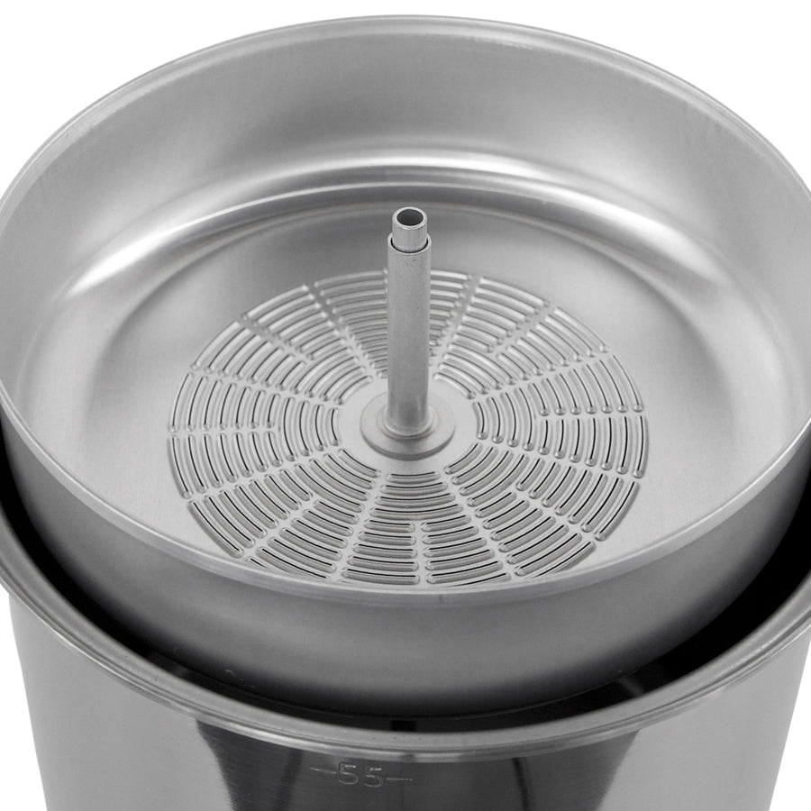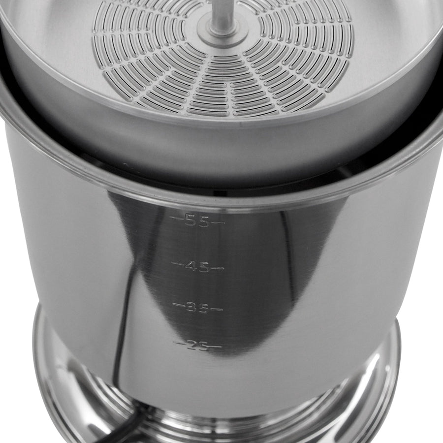 The serving light provides a clear signal at the end of the brewing cycle, and interior water level markings simplify the filling process. Constructed with precision, the urn boasts a highly polished stainless steel exterior, exuding durability and a modern aesthetic. The heat-resistant base adds to its functionality while the two-way dripless faucet guarantees mess-free dispensing.