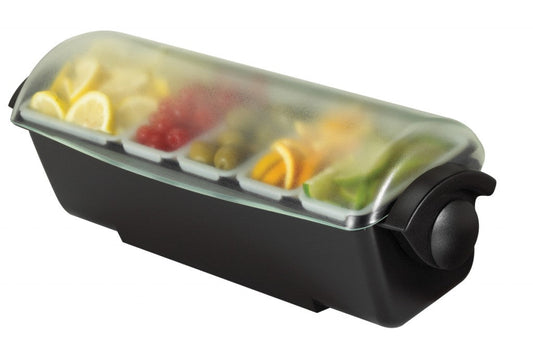 TableCraft Ultimate Garnish Station, 5 Compartment, 2 Caddies, 5 Rimmer Trays, Black - BCD1400